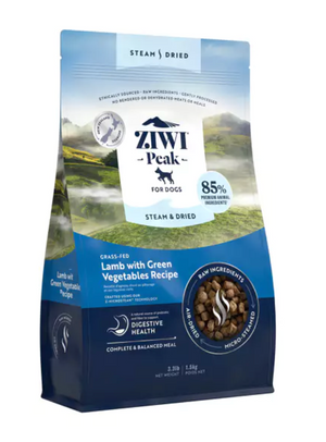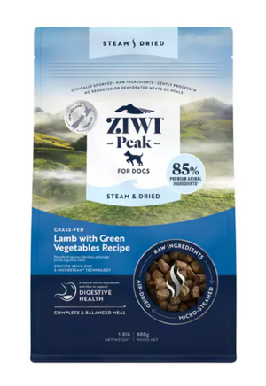 ZIWI New Zealand Lamb with Green Vegetables Steam Dried Dog Food is made from ethically sourced, grass fed lamb and nutritious veggies. Through a two-step process Ziwi gently micro-steam dries their raw ingredients and then air-dries, meaning that the goodness from the ingredients doesn't get lost in any harsh cooking processes. With no added grains, sugars, antibiotics or growth hormones, this is a healthy and delicious food option for dogs of all ages and sizes.