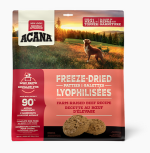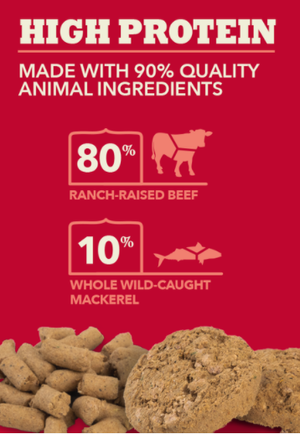 This freeze-dried food from ACANA offers a convenient way to feed a raw diet to your dog. Available in both morsels and patties so you can choose between topping off your current food or serving as a complete meal. Made with ranch-raised beef and whole wild-caught mackerel, and infused with delicious bone broth.