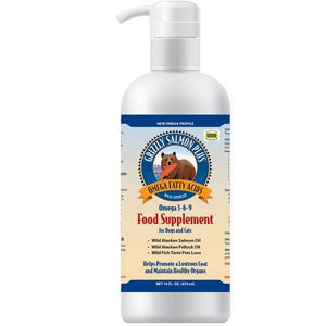 Description: Made in the USA and derived from Wild Alaskan Salmon, Pollock and Whitefish to offer a daily supplement which provides your dog with Omega-3 fatty acids, rich in EPA and DHA, which are easier to metabolize than Omegas found in other sources. All Grizzly Salmon Oils are sustainable, taking the oils from human seafood products rather than catching fish solely for the purpose of making oil.