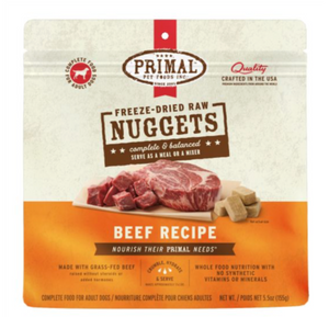 Primal Freeze-Dried Canine Beef Nuggets are packed with vitamins and amino and fatty acids making them a healthy food choice for dogs of all ages and sizes. Add water and mix prior to serving.