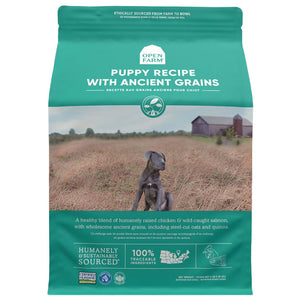 This ancient grain kibble from OPEN FARM has everything your growing pup needs to match their high energy and dietary needs. Full of meat from the land and sea including humanely raised chicken, pork, and fresh Pacific wild-caught salmon along with superfoods like coconut oil, pumpkin and turmeric and wholesome grains like oats and quinoa, your young dog will be getting a tasty meal that helps them grow strong.