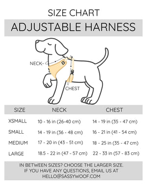 These no-pull harnesses from SASSY WOOF are made with sporty neoprene and breathable mesh. They have attachment points on the front and the back, and are fully adjustable at the neck and the chest making it easy for a good fit. Matching leashes and waste bag holders are also available.