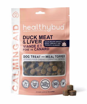 Duck Liver, Duck, Vegetable Glycerin, Hemp Protein Powder, Sweet Potato, Hemp Oil, Phytozen Bud (Orange Essential Oil and Natural Polyphenols), Buckwheat Flour, Reishi [10:1 extract], Organic Ashwagandha, Molasses, Sunflower Lecithin, Kelp, L-Theanine, Chamomile Extract, Yucca Schidigera, Pumpkin Seeds, Blueberries, Goji Berries, Ginger Root, Turmeric Powder, Rosemary Extract.