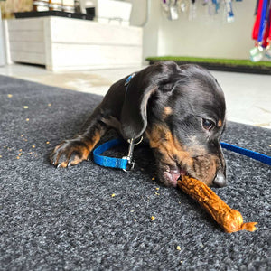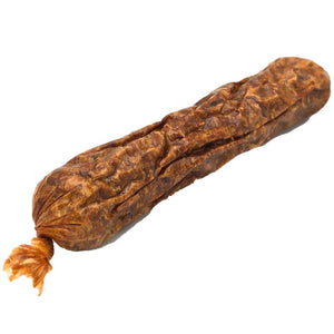 Wooftown Charcuterie offers a refined line of single-ingredient dog treats crafted with premium, responsibly sourced proteins. Each treat is thoughtfully selected to deliver maximum flavor, nutrition, and crunch—without any fillers, additives, or nonsense. Made in Canada, this savoury air-dried treat is made with yummy chicken and fresh parsley. Rich in lean protein and naturally soothing to digestion, this sausage is dehydrated to lock in flavor and create a chewy texture dogs love.
