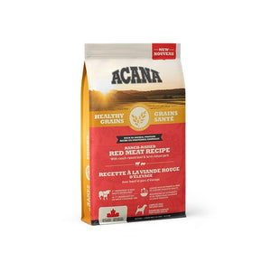 ACANA Healthy Grains Ranch-Raised Red Meat Dog Food features a combo of fresh and raw ranch-raised beef and farm-raised pork balanced with a selection of healthy grains including oats, sorghum, and millet. This means that your dog is getting a high-fibre diet packed with essential vitamins and minerals to help them maintain a healthy digestive system while also enjoying a rich meaty flavour. Made in Canada and suitable for dogs of all breeds and life stages.