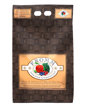 FROMM Four Star Pork & Applesauce Dog Food is made with fresh pork and homemadecountryapplesauce.This formula is also loaded with hand-picked fruits and veggies to make a tasty and nutritious kibble for your dog. The Fromm Four Star Nutritionals line are a healthy, grain inclusive option for dogs.