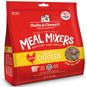 This meal mixer from Stella and Chewy's is made from 95% raw, cage-free chicken including the meat, organs and bones combined with organic fruits, vegetables and seeds. Use a ¼ cup measuring cup as a scoop to add this topper to your dog’s regular food.
