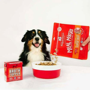 This meal mixer from Stella and Chewy’s is made from 95% raw, grass-fed beef meat, organs and bones and includes fruits, vegetables and seeds to make a tasty well-rounded meal. Use a ¼ cup measuring cup as a scoop to add this topper to your dog’s regular food.